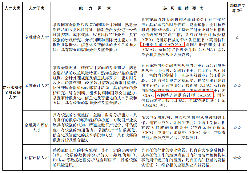 總結(jié)來說,具有在海內(nèi)外金融機(jī)構(gòu)從事財(cái)務(wù)會(huì)計(jì)的工作經(jīng)歷;具有豐富的財(cái)務(wù)管理、資金運(yùn)作、會(huì)計(jì)核算和費(fèi)用管理經(jīng)驗(yàn),并主持開展過企業(yè)財(cái)務(wù)運(yùn)作理論的研究與實(shí)踐工作;具有國際權(quán)威的資格認(rèn)證證書(ACCA英國國際注冊(cè)會(huì)計(jì)師等),符合相關(guān)金融從業(yè)人員資格。對(duì)符合目錄要求的金融人才,將享受: