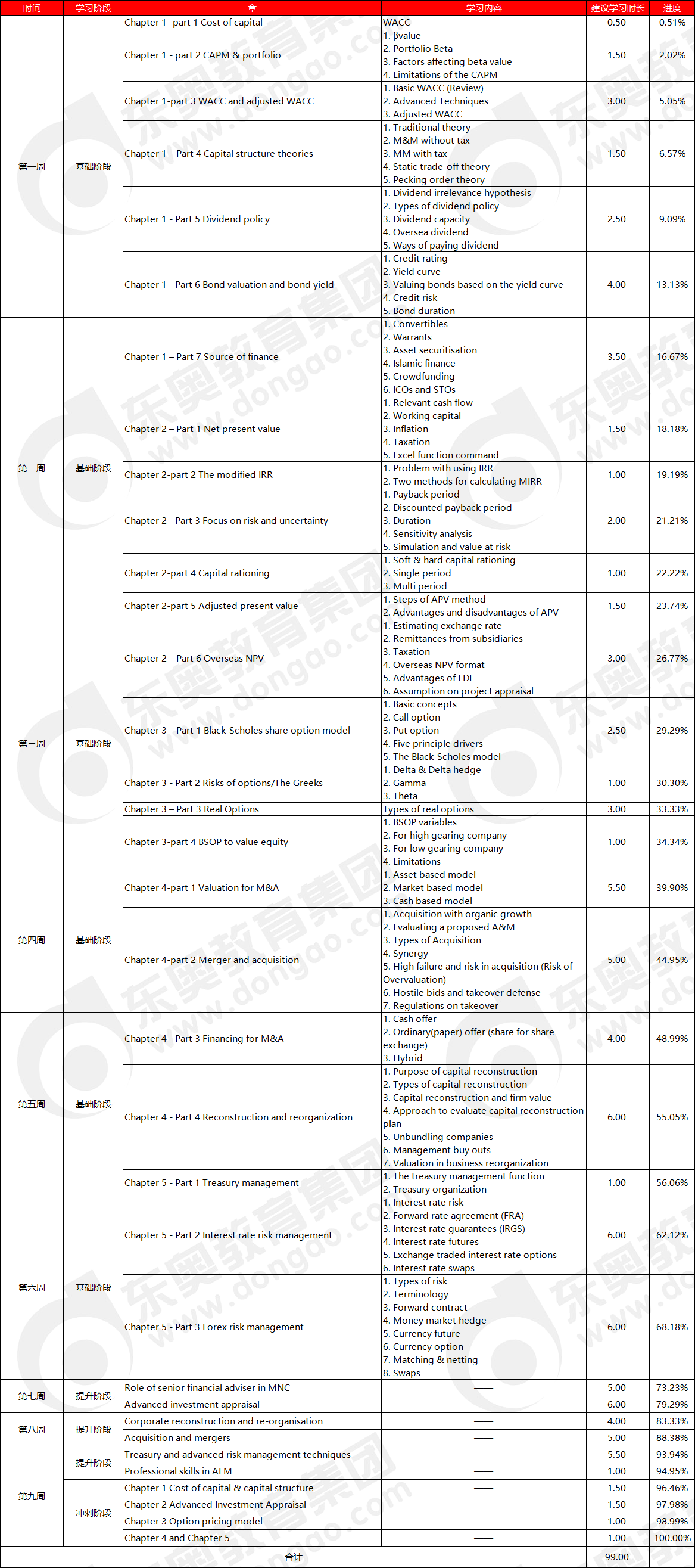沉醉于知識的海洋,讓學習成為一種享受。accaAFM是指《高級財務管理》這一門科目,是選修模塊的科目之一,科目涵蓋的內容包括高級投資評估,公司并購、重組;高級風險管理;跨國公司面臨的經濟環(huán)境等。今天為同學們整理了AFM科目學習計劃表,準備參加考試的同學們來看看吧。