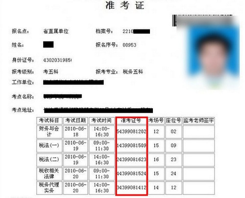 原注冊(cè)稅務(wù)師準(zhǔn)考證樣式:
