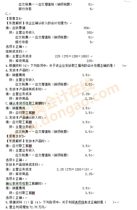(4)31日,以其生產(chǎn)的M產(chǎn)品10件作為福利發(fā)放給銷售人員。每件市場價格為0.3萬元,與其計稅價格一致。