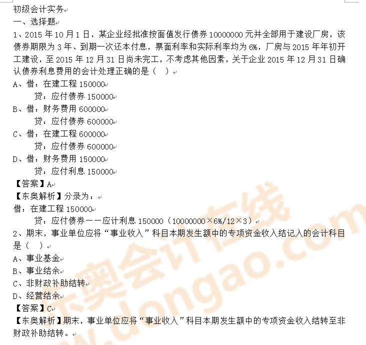 下一篇: 2016初級職稱考試《初級會計實務(wù)》真題及解析5月17日