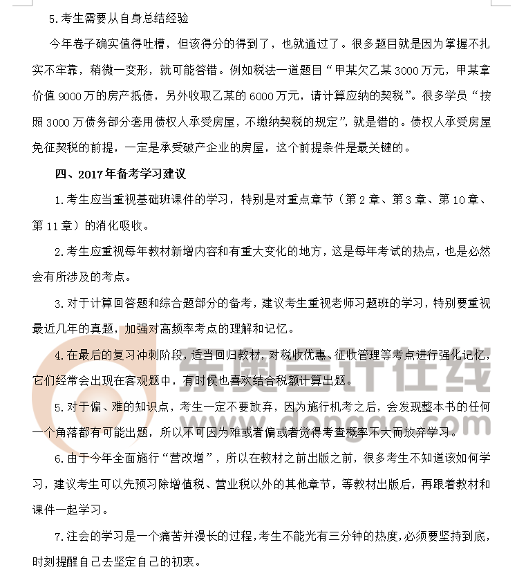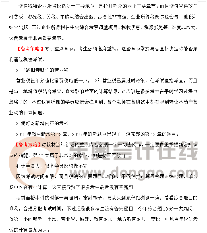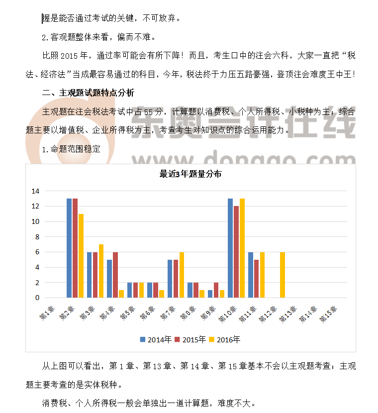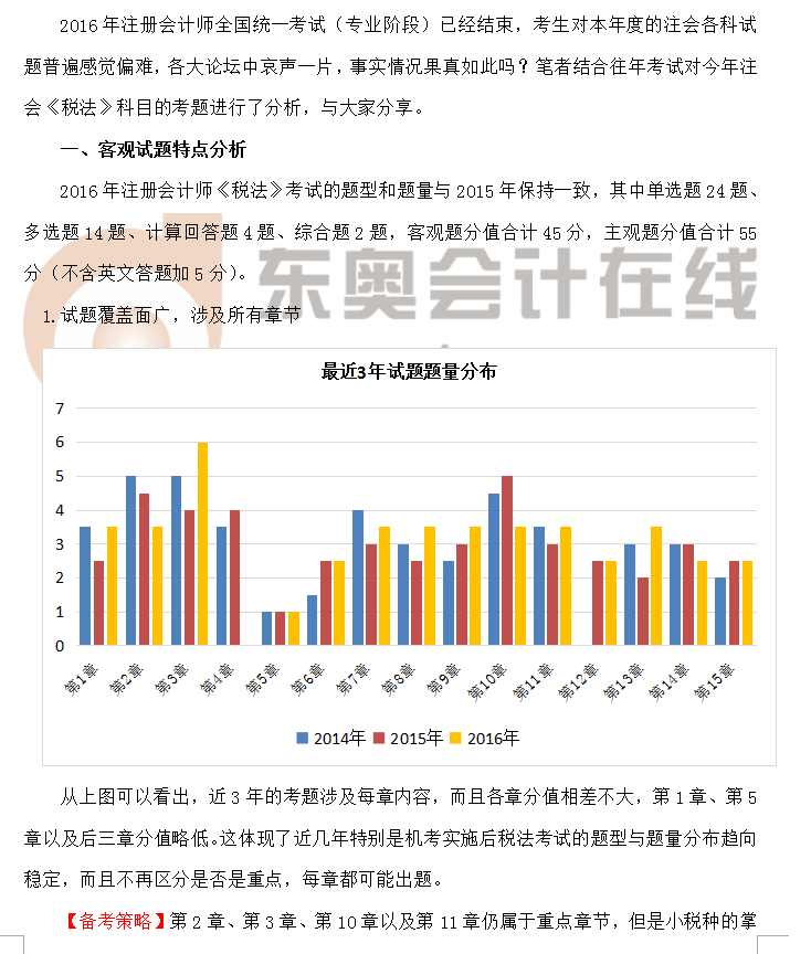 2016年注冊會計師考試《稅法》考情評析