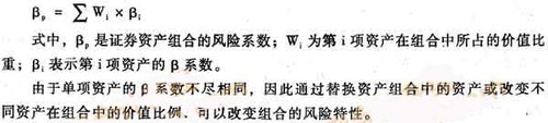 證券資產(chǎn)組合的β系數(shù)是所有單項(xiàng)資產(chǎn)β系數(shù)的加權(quán)平均數(shù),權(quán)數(shù)為各種資產(chǎn)在證券資產(chǎn)組合中所占的價(jià)值比例。計(jì)算公式為: