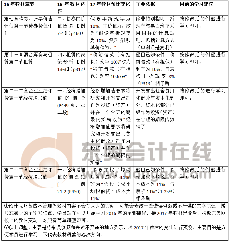 2017年注會(huì)考試《財(cái)管》教材變化預(yù)測(cè)