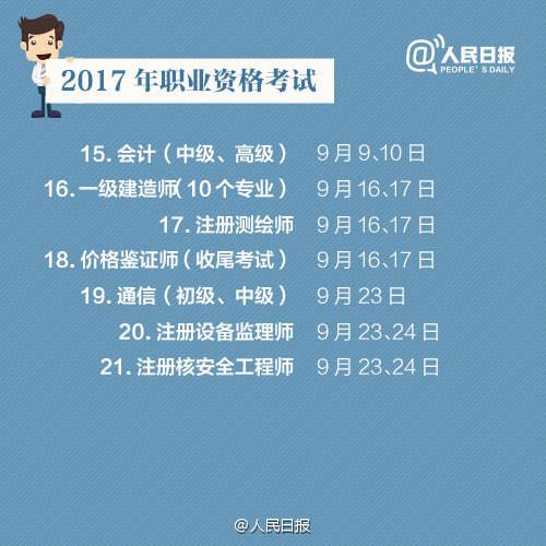 2017年職業(yè)資格考試安排 讓你升職加薪