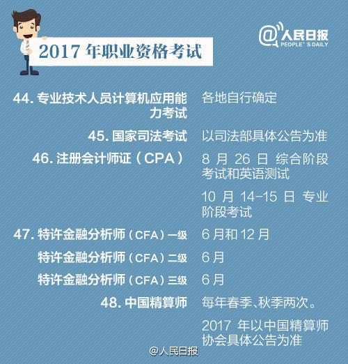 全國司法廳長會議透露,2017年將是國家司法考試的最后一年!除了司法考試之外,還有哪些含金量較高的職業(yè)資格考試?它們關(guān)系著你的晉升、工資等,都是什么時候考?注會考試是什么時候?戳圖↓↓2017年55項考試時間表。趕緊準備起來吧!