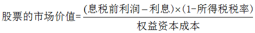 股票的市場價值= 權(quán)益資本成本=RF+β×(Rm-RF)