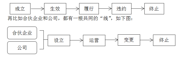 經(jīng)濟(jì)法的考點(diǎn)很多,知識(shí)點(diǎn)非?,嵥椋覀円堰@些零散的知識(shí)點(diǎn)用一條主線串連到一起。在復(fù)習(xí)過程中,有意識(shí)地找到這些“線”,記憶將更有條理、更有序。比如合同法有一根明顯的“線”,如下圖: