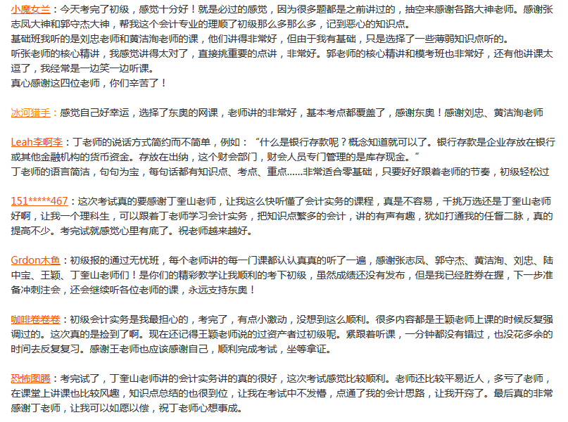 看到評論中很多東奧學(xué)員表示信心十足,坐等拿證,小編打心眼里為大家感到高興,還有一些沒考的小伙伴在求經(jīng)驗,求分享。希望考前考后的小伙伴們可以在我們的2017初級會計職稱考后討論區(qū)里互相幫助,暢所欲言哦。