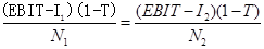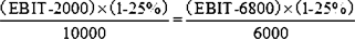 依據(jù)EBIT-EPS無差別點(diǎn)分析法原理,使EPS相等的息稅前利潤測算方式如下: