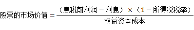 假設(shè)企業(yè)的經(jīng)營利潤永續(xù),股東要求的回報(bào)率(權(quán)益資本成本)不變,則股票的市場價(jià)值為: