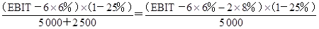 方案二每股收益=(15000-6800)(1-25%)/6000=1.025(元)