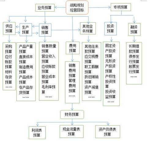 全面預(yù)算通常由業(yè)務(wù)預(yù)算(即經(jīng)營預(yù)算)、專項(xiàng)預(yù)算(即投融資預(yù)算)和財(cái)務(wù)預(yù)算三部分組成。