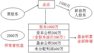 【案例】A企業(yè)的所有者權(quán)益情況為:股本(實(shí)收資本)1000萬(wàn),資本公積300萬(wàn)(其中股本溢價(jià)200萬(wàn)),盈余公積300萬(wàn),未分配利潤(rùn)400萬(wàn),總計(jì)2000萬(wàn)元。張先生出資2500萬(wàn)元購(gòu)買A企業(yè)100%股權(quán)。