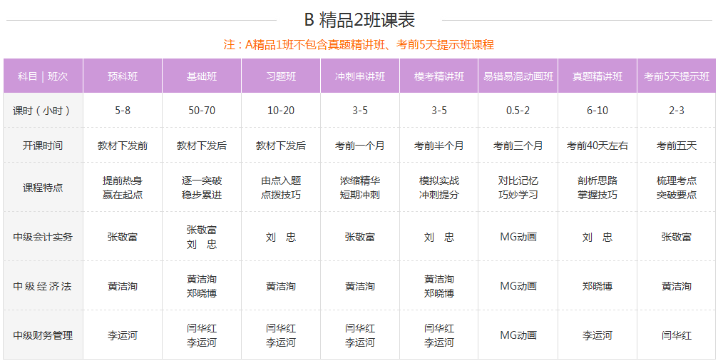 中級(jí)會(huì)計(jì)師考試課程對(duì)比