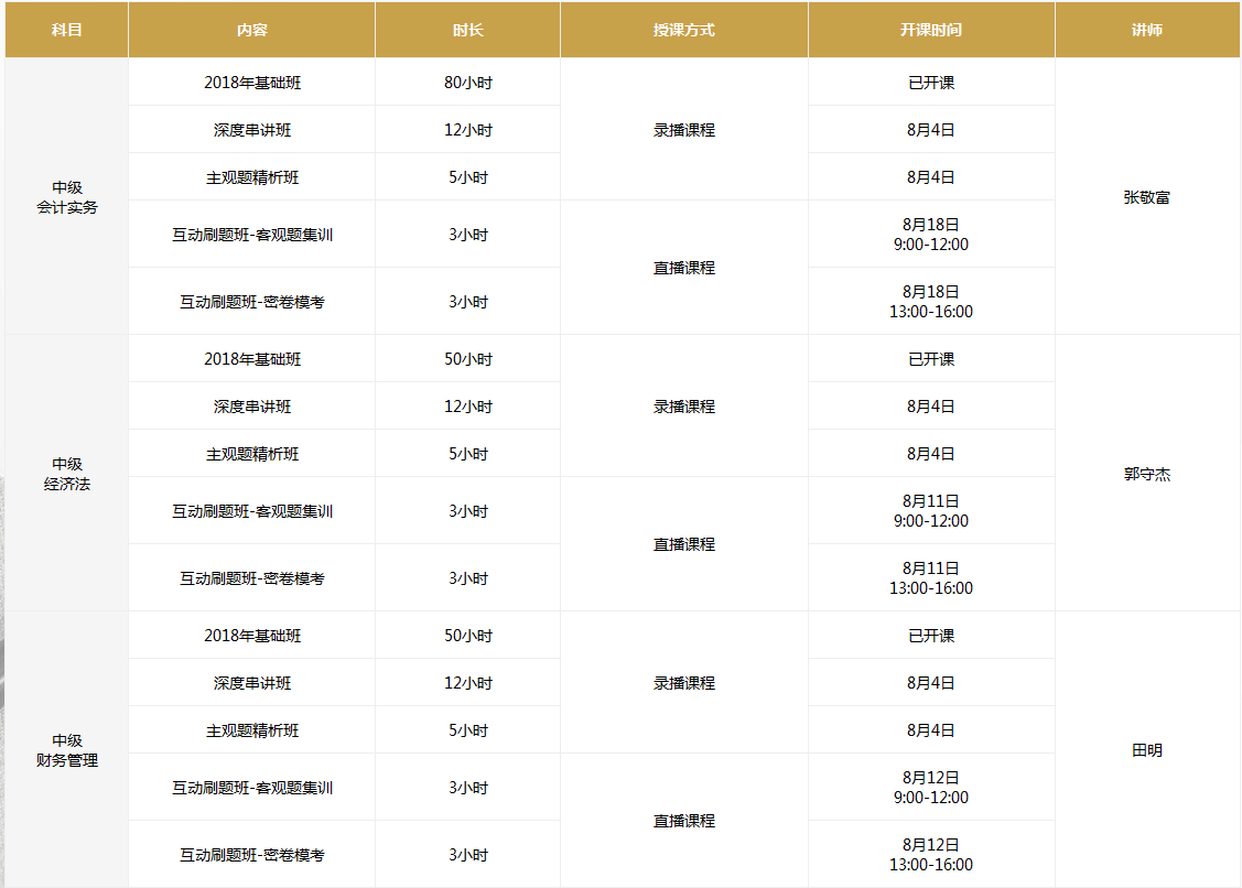 2018年中級(jí)會(huì)計(jì)職稱考試課程與服務(wù)對(duì)比