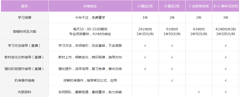 2018年精品保障班延續(xù)了2017年精品保障班的風(fēng)格,是東奧的經(jīng)典班次:2年保障、8大精品課程、5項(xiàng)精品習(xí)題、5項(xiàng)精品服務(wù)、4項(xiàng)贈(zèng)送。主要針對(duì)基礎(chǔ)薄弱,學(xué)習(xí)能力一般,時(shí)間充足,已參加過考試或者報(bào)過班的學(xué)員。