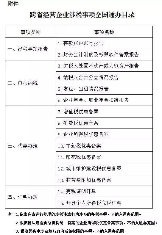 附件:跨省經(jīng)營(yíng)企業(yè)涉稅事項(xiàng)全國(guó)通辦目錄