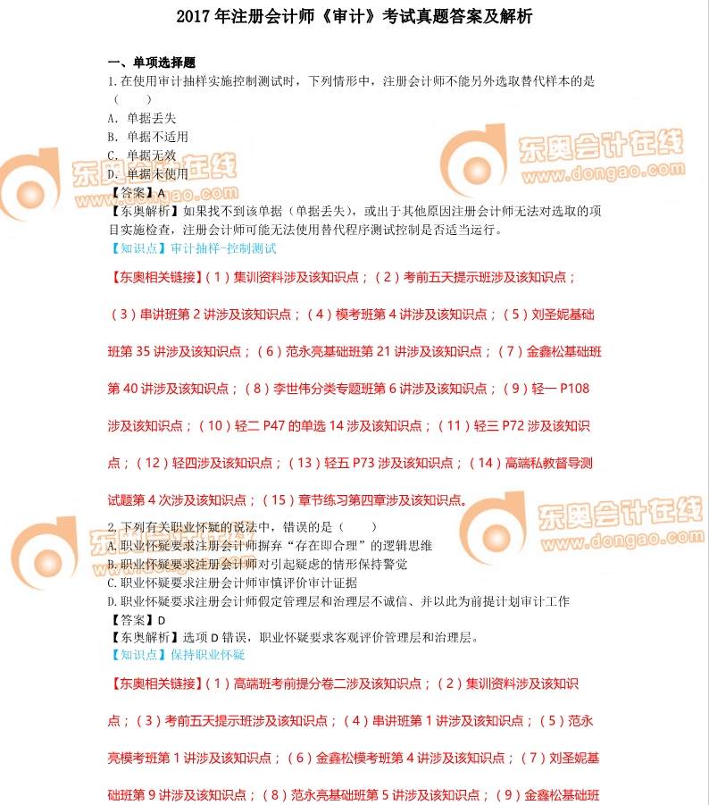 2017注冊會計師《審計》真題及答案解析(考生回憶版)