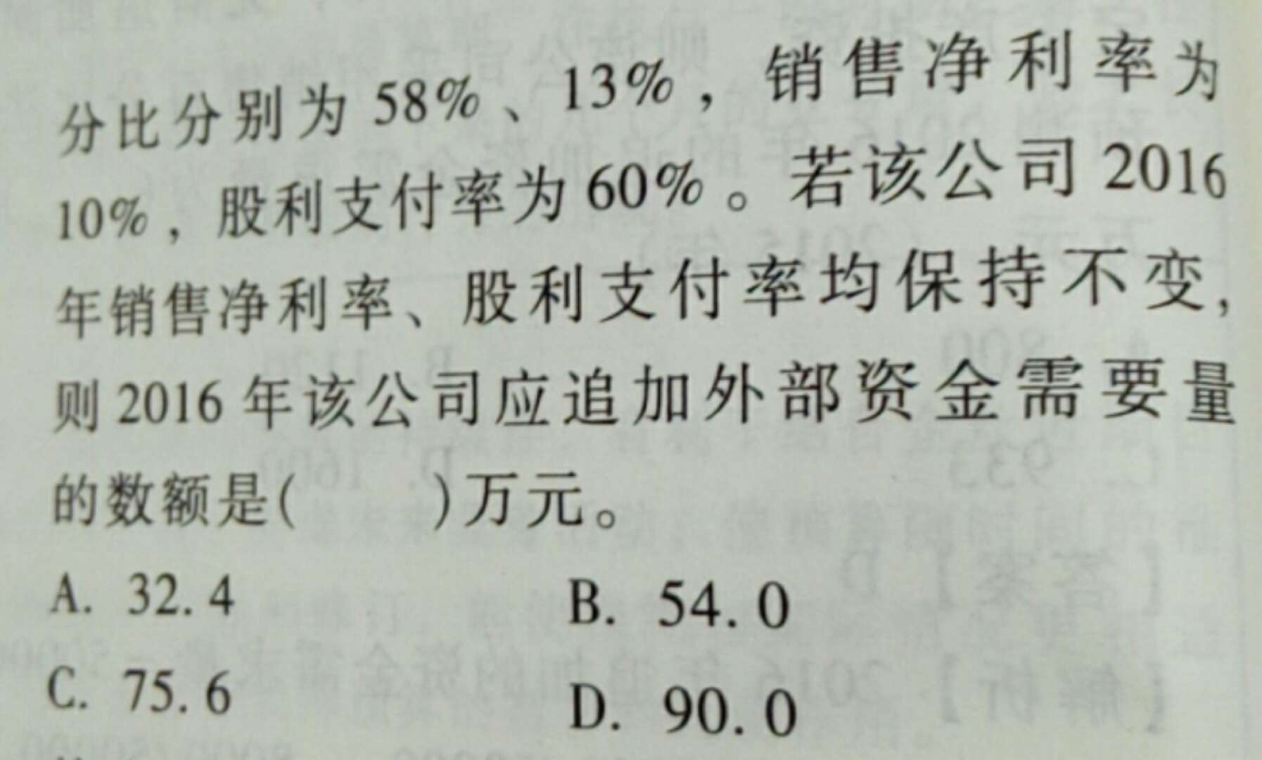 【解析】本題考查的知識(shí)點(diǎn)是運(yùn)用銷(xiāo)售百分比法計(jì)算外部融資額。外部融資需求量=2000×20%×(59%-14%)-2000×(1+20%)×10%×(1-60%)=84(萬(wàn)元),所以選項(xiàng)C正確。參考教材P28。
