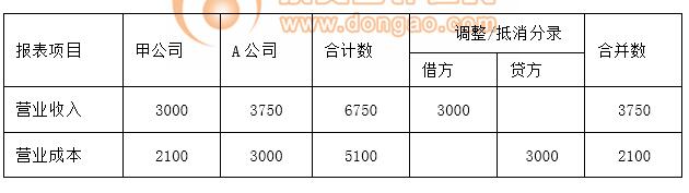【例題】甲公司擁有A公司70%的股權(quán),系A(chǔ)公司的母公司。甲公司本期個(gè)別利潤(rùn)表的營(yíng)業(yè)收入中有3000萬(wàn)元,系向A公司銷(xiāo)售產(chǎn)品取得的銷(xiāo)售收入,該產(chǎn)品銷(xiāo)售成本為2100萬(wàn)元。A公司在本期將該產(chǎn)品全部售出,其銷(xiāo)售收入為3750萬(wàn)元,銷(xiāo)售成本為3000萬(wàn)元,并分別在其個(gè)別利潤(rùn)表中列示。