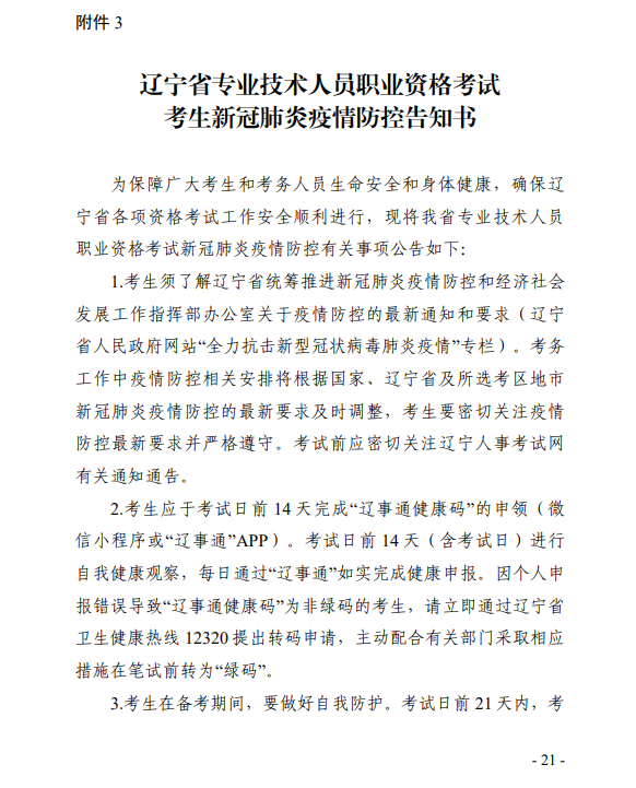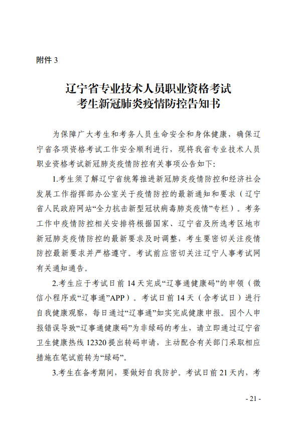遼寧省專業(yè)技術人員職業(yè)資格考試考生新冠肺炎疫情防控告知書3