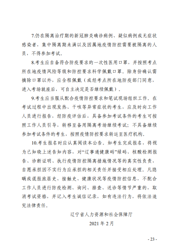 遼寧省專業(yè)技術人員職業(yè)資格考試考生新冠肺炎疫情防控告知書2