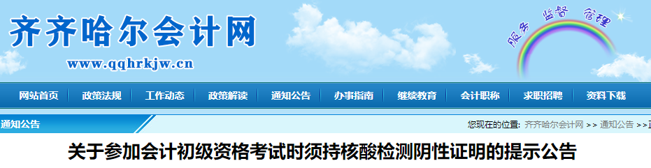 黑龍江齊齊哈爾提示:參加2022年初級會計考試須持核酸檢測陰性證明