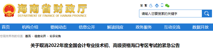 海南關(guān)于取消2022年初級(jí)會(huì)計(jì)海口考區(qū)考試的緊急公告