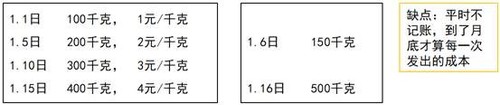 1.6日發(fā)出成本:(100×1+200×2+300×3+400×4)/(100+200+300+400)=3
