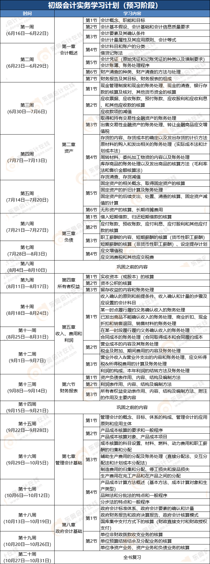 2022年初級會計考試預(yù)習(xí)階段備考開始了,預(yù)習(xí)階段是考生在正式備考之前的熱身階段,為了保障后面?zhèn)淇柬樌M(jìn)行,大家前期一定要準(zhǔn)好準(zhǔn)備,提前預(yù)習(xí),打好基礎(chǔ),東奧小編為大家準(zhǔn)備了2022年《初級會計實務(wù)》預(yù)習(xí)階段學(xué)習(xí)計劃,建議收藏學(xué)習(xí)!