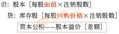 股份有限公司回購并注銷股票 | 注銷股票時: (1)如果回購價款大于股票 面值,差額沖減資本公積——股本溢價,不足沖減的,依次沖減盈余公積和利潤分配——未分配利潤