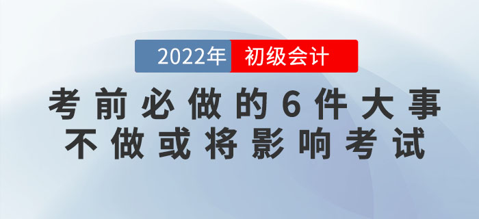 2022年初級(jí)會(huì)計(jì)考試于8月1日開(kāi)考!在初級(jí)會(huì)計(jì)考前,考生們有6件大事必須要做,不做或?qū)⒂绊懣荚?!趕緊來(lái)看看,這幾件事你都做了嗎?