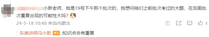 熱點(diǎn)問題:上午考過的之后批次還會考原題嗎?小新老師回答:知識點(diǎn)會重復(fù)!