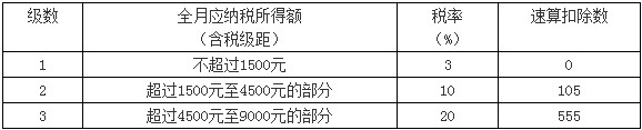 【答案解析】:(1)應納稅所得額=7000-3500=3500(元),查找稅率簡表,應適用第2級,稅率為10%,速算扣除數(shù)為105;(2)應納稅額=(7000-3500)×10%-105=245(元)。