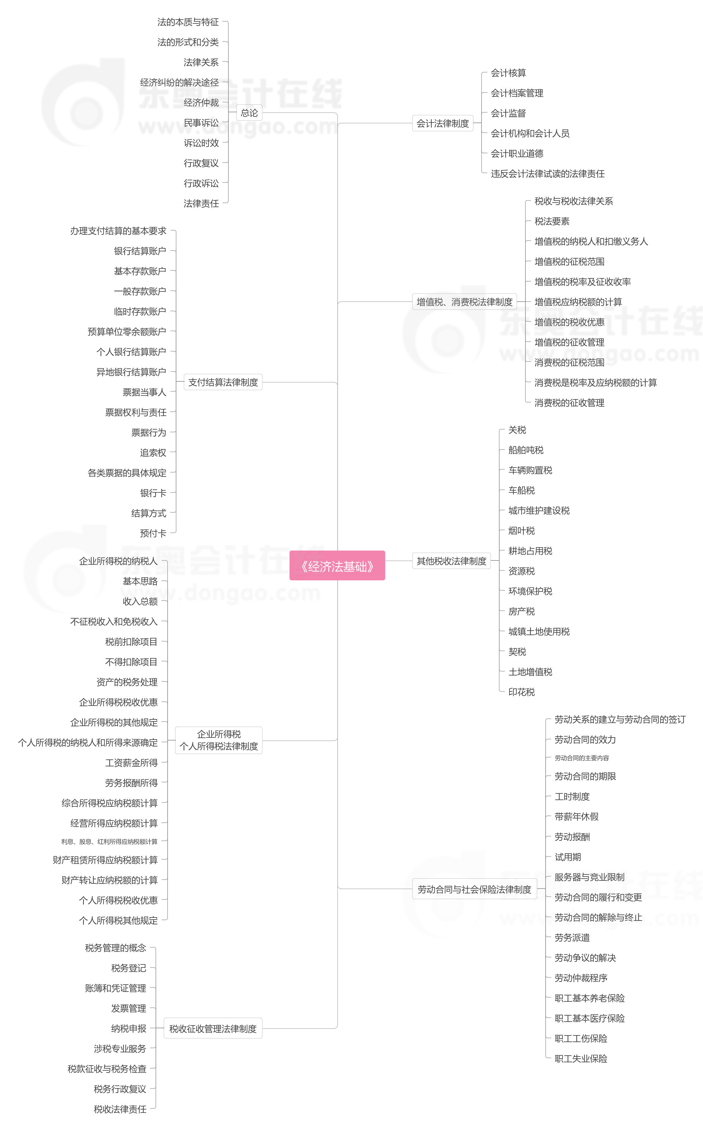 《經(jīng)濟(jì)法基礎(chǔ)》科目涉及到較多的法律條文,考生在學(xué)習(xí)時要記得定期鞏固,下面東奧小編為大家整理了本科目的思維導(dǎo)圖,建議考生收藏。