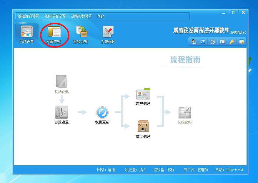 登錄后,顯示“系統(tǒng)設(shè)置”界面,單擊“發(fā)票管理”