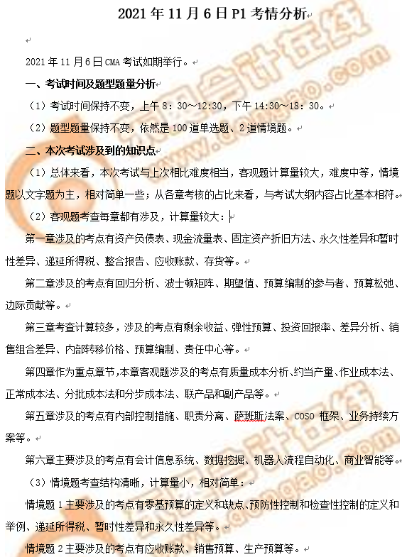 CMA11月考季P1部分難嗎?快來關(guān)注考情分析!