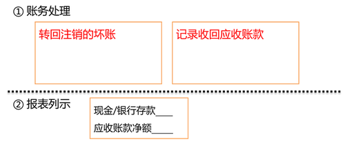 轉(zhuǎn)回之前注銷的壞賬準備,重新記錄應(yīng)收賬款和現(xiàn)金的變化