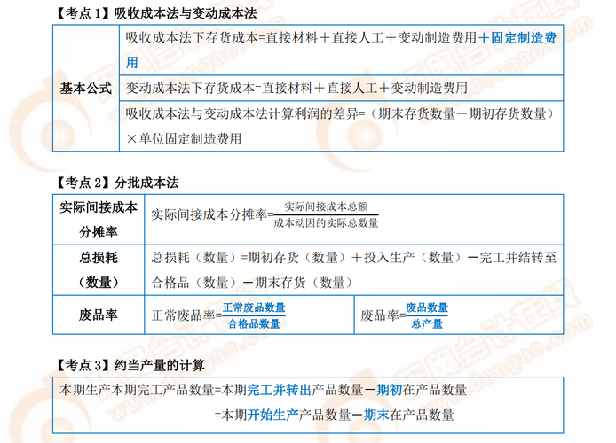 本章知識點(diǎn)繁雜,但掌握好方法一樣能將知識點(diǎn)由點(diǎn)及面連接起來,使學(xué)習(xí)更為輕松。就本章節(jié)介紹的成本類型和成本的劃分等相關(guān)的成本概念一定要理解記憶清楚,本章的計(jì)算較多,約當(dāng)產(chǎn)量、聯(lián)產(chǎn)品分?jǐn)?、服?wù)部門成本分?jǐn)傄约伴g接成本分?jǐn)偠际潜容^有難度的知識點(diǎn),一定要將所有課程和習(xí)題都做一遍才能熟練掌握。