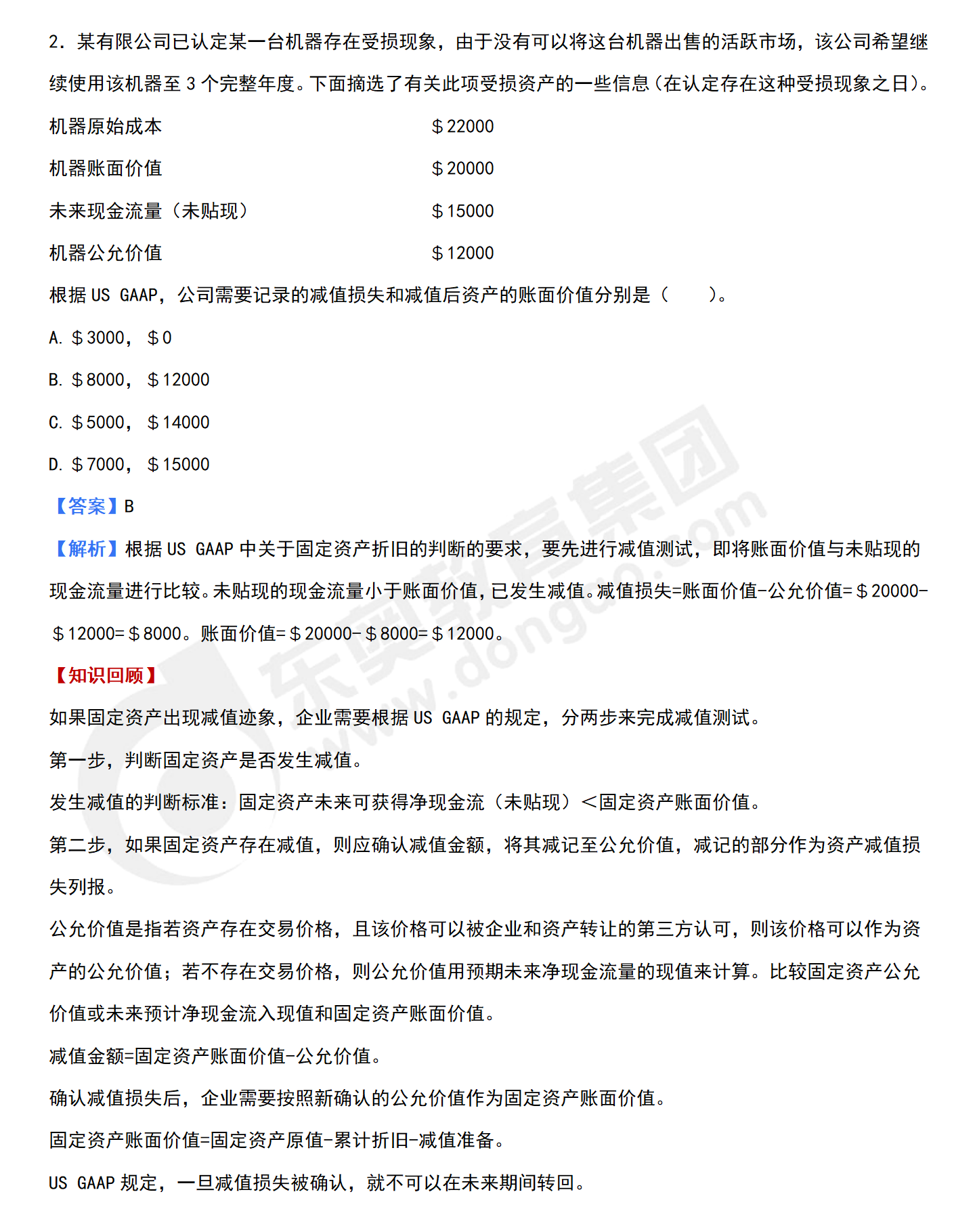 根據US GAAP,公司需要記錄的減值損失和減值后資產的賬面價值分別是(  )。