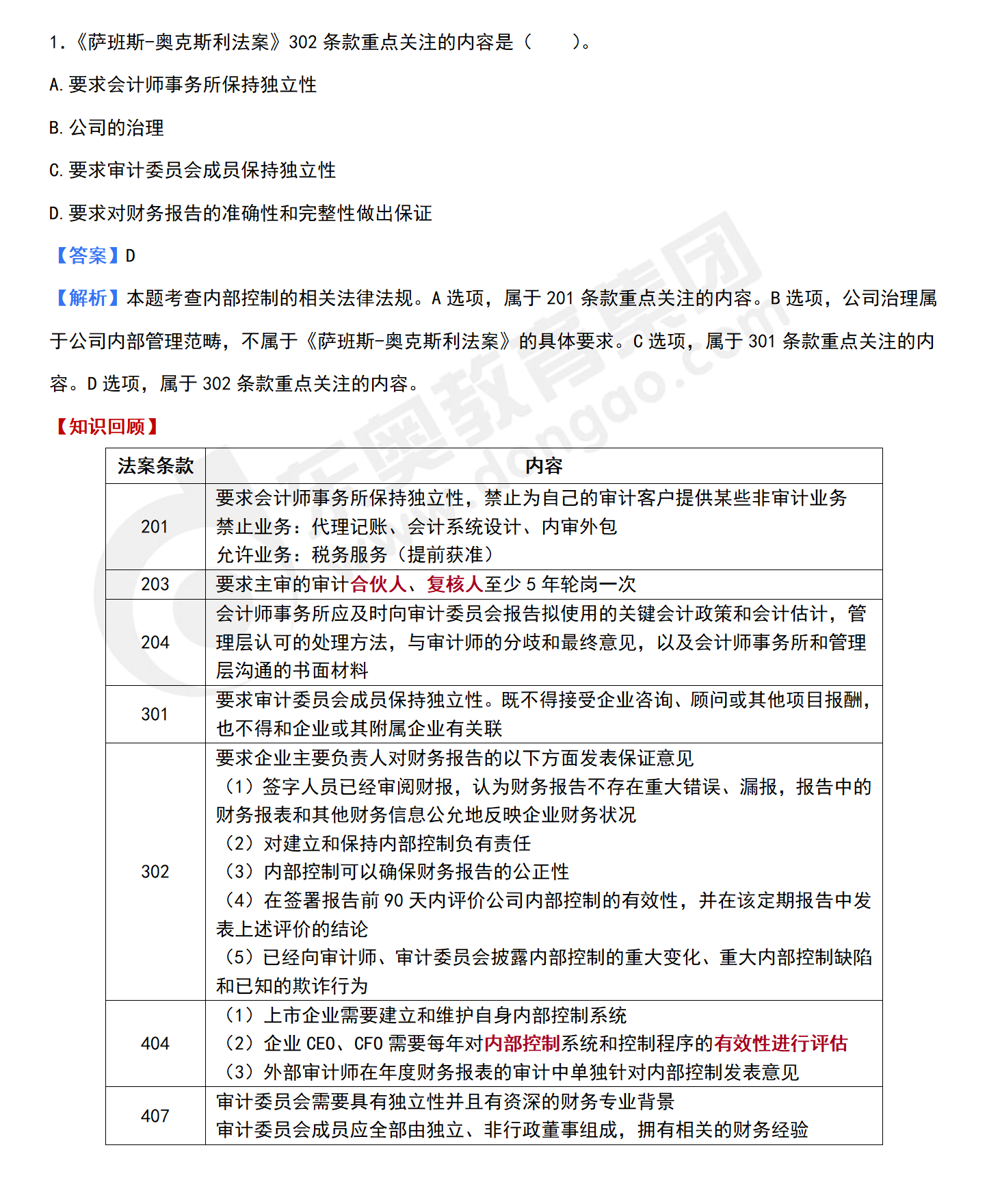 1.《薩班斯-奧克斯利法案》302條款重點關注的內容是( ?。?。