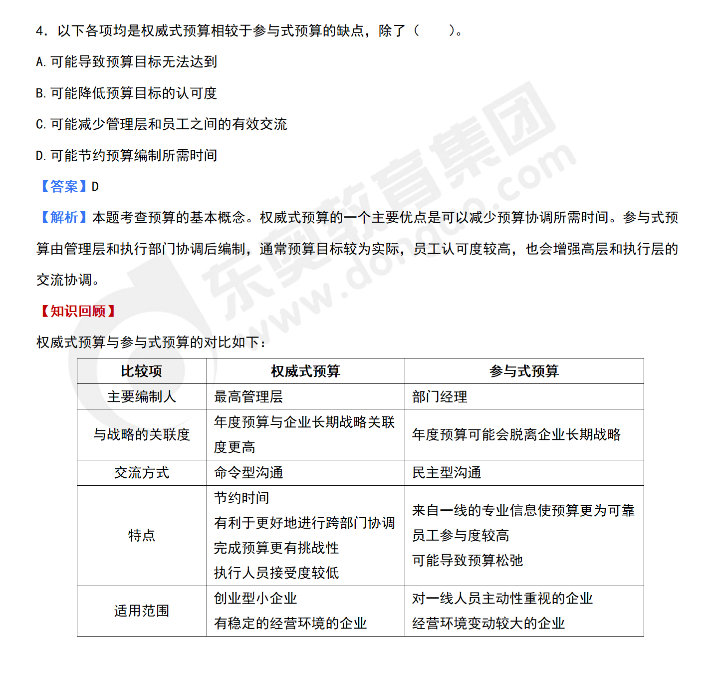 4.以下各項均是權威式預算相較于參與式預算的缺點,除了( ?。?。