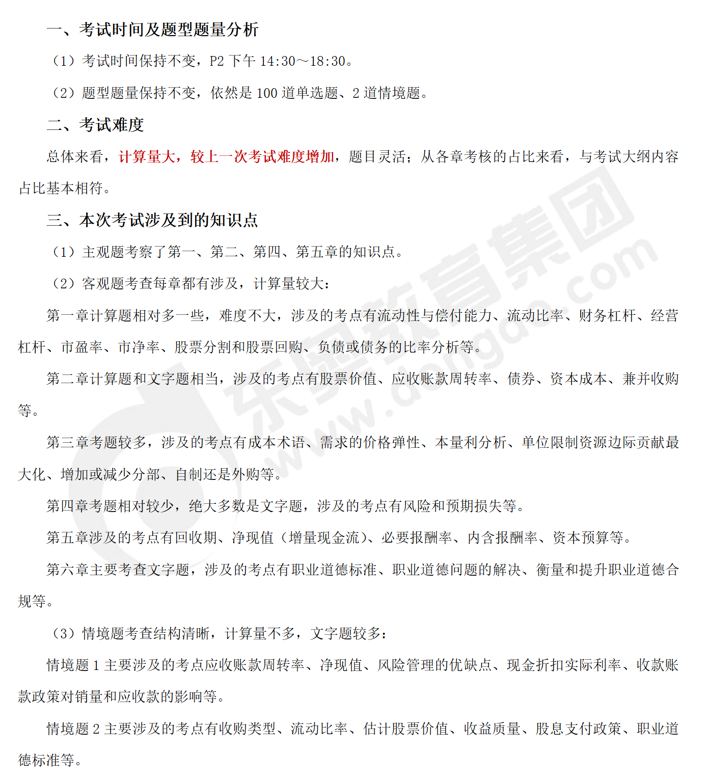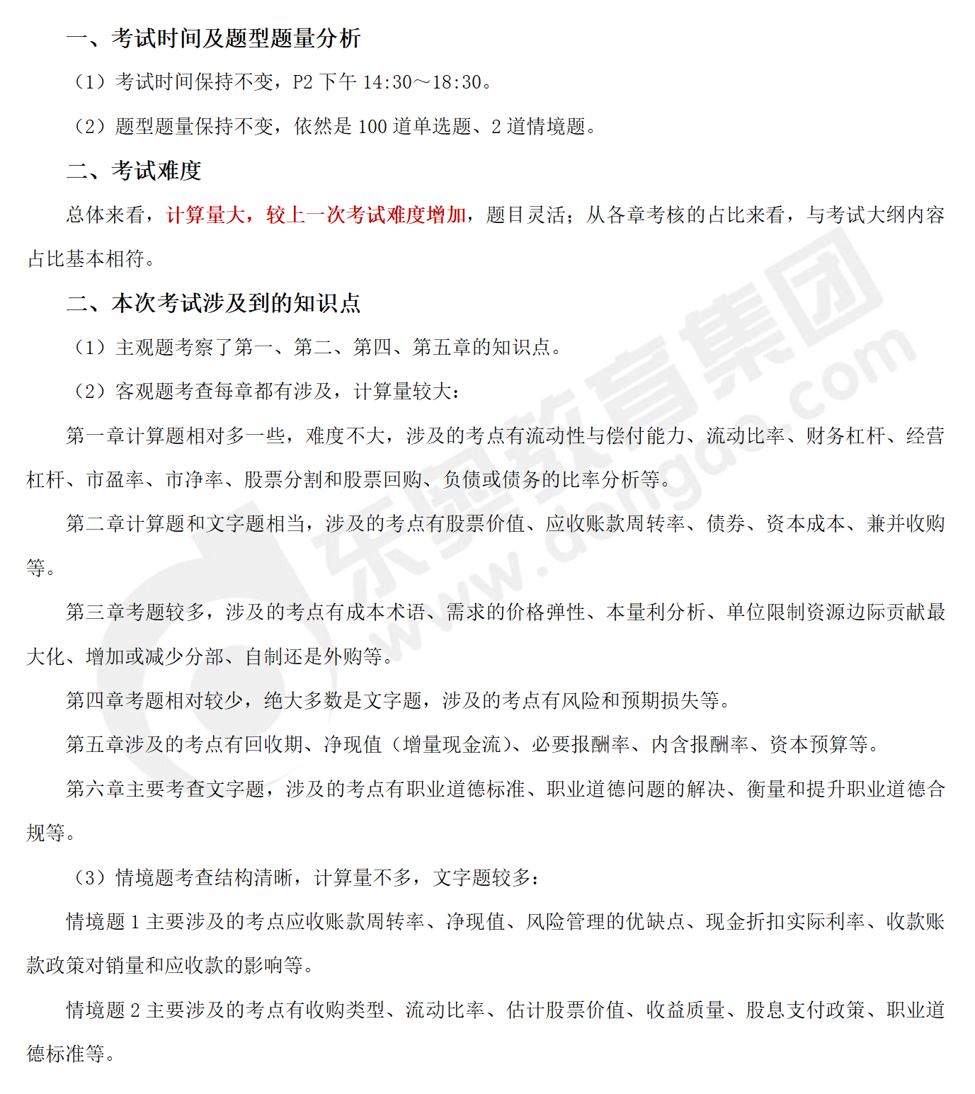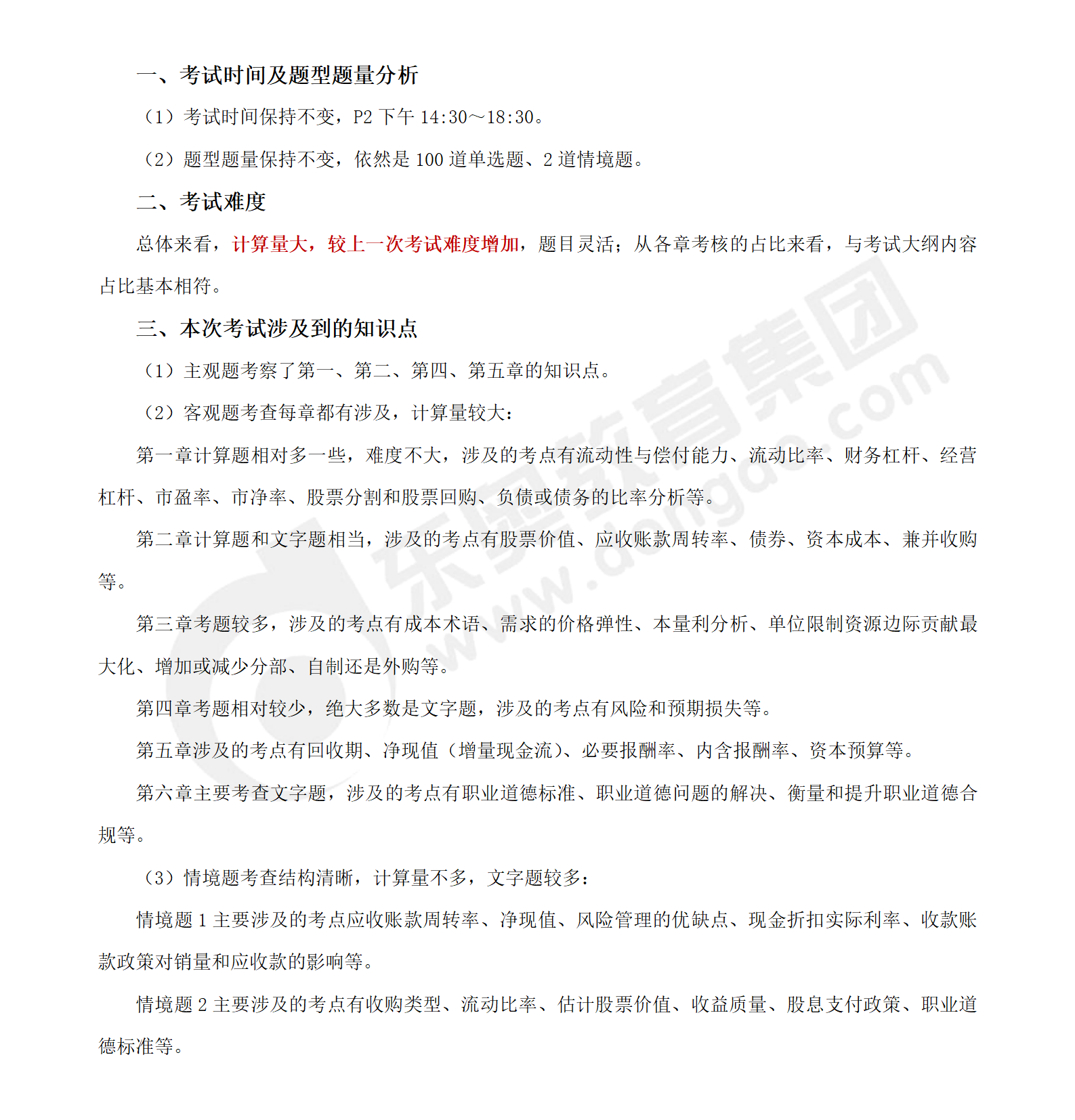 據(jù)參加本次考試的考生反饋,此次P2考試常規(guī)考點出題較多,沒有特別偏的考點,計算題較多,主觀題難度相對中等,都是平時常見的考點和試題類型。