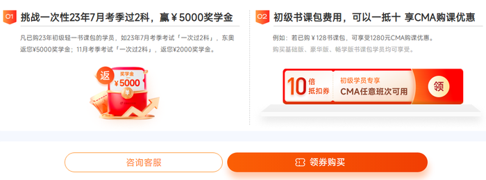 推薦閱讀:23年5折報(bào)考CMA!免除注冊費(fèi)+第二年年費(fèi)!詳細(xì)了解獲取優(yōu)惠代碼>>>