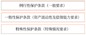 一般性保護(hù)條款是對企業(yè)資產(chǎn)的流動性及償債能力等方面的要求條款,這類條款應(yīng)用于大多數(shù)借款合同,主要包括: