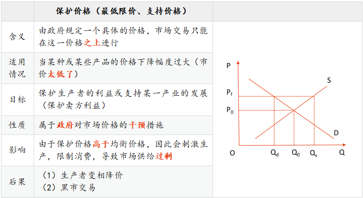 【解析】保護價格,也叫支持價格或最低限價,就是由政府規(guī)定一個具體的價格,市場交易只能在這一價格之上進行,其目的是保護生產(chǎn)者利益或支持某一產(chǎn)業(yè)的發(fā)展。保護價格高于均衡價格,因此會刺激生產(chǎn),限制消費,導(dǎo)致市場供給過剩。一般來說,當(dāng)實施保護價格政策而出現(xiàn)過?,F(xiàn)象時,如果沒有政府的收購,就會出現(xiàn)變相降價或黑市交易等問題,并可能導(dǎo)致市場價格的下降。因此,要保證保護價格的順利實施,除了要有強有力的行政措施外,還必須建立政府的收購和儲備系統(tǒng)。