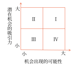 Ⅱ(大機會小概率):企業(yè)暫時無法利用這些機會,機會一旦出現(xiàn)會給企業(yè)帶來潛在利益 | |