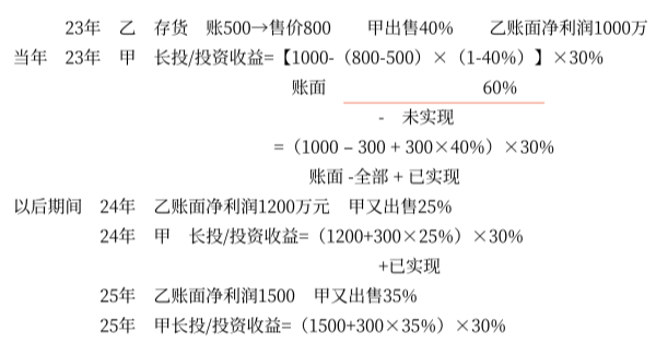 以后期間:個別報表應(yīng)當確認的投資收益=(凈利潤+已實現(xiàn)的利潤)×持股比例