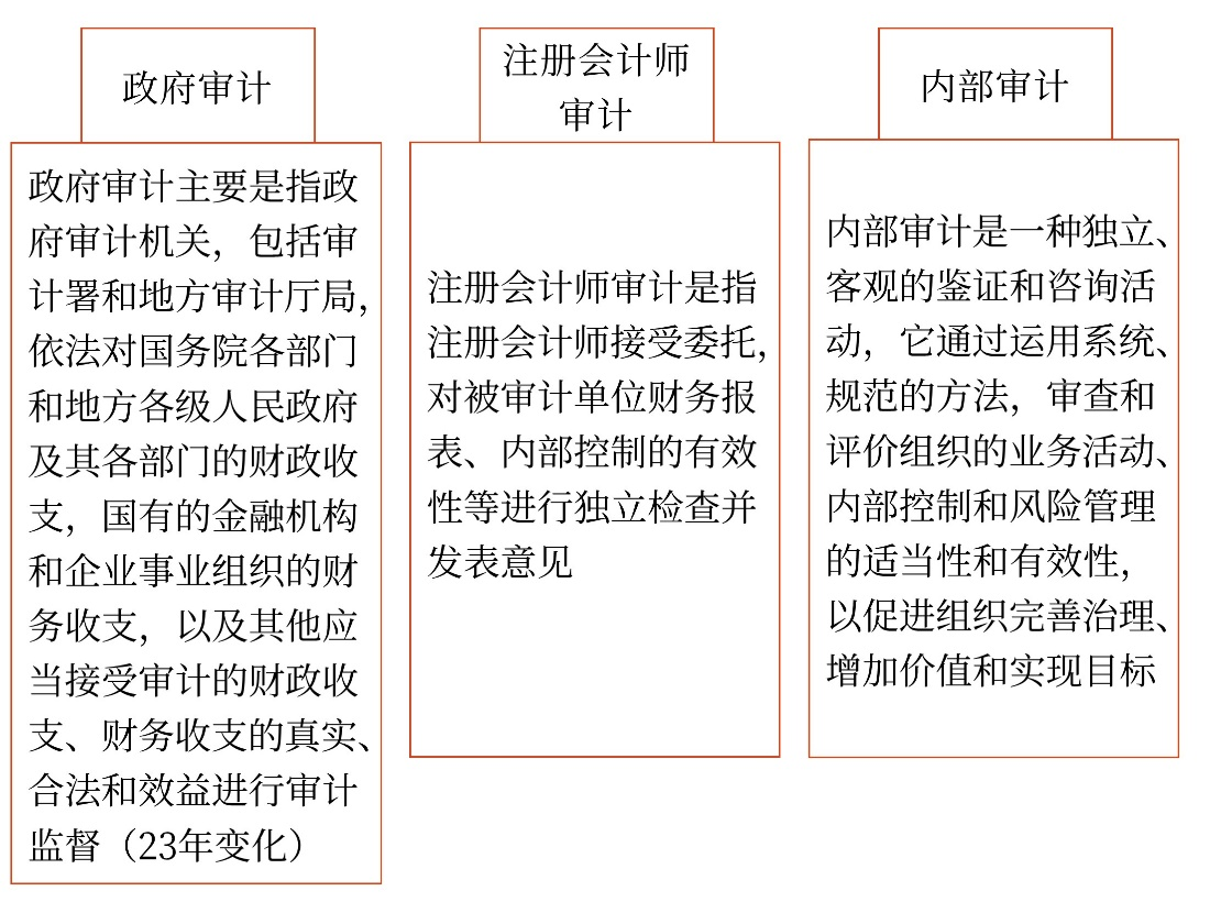 2.注冊會計師務(wù)業(yè)務(wù)與之相對,只需記住政府審計即可。